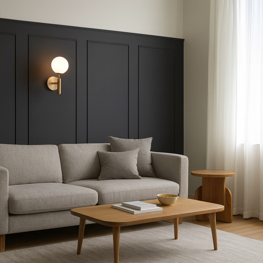L'élément central de cette applique est la boule blanche de lumière douce, et support en doré, apportant une ambiance chaleureuse et relaxante à l'espace de la tête de lit.