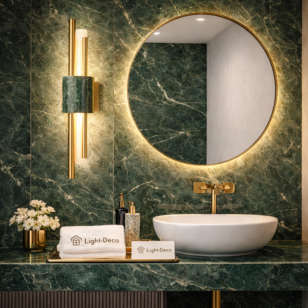 Le meilleure choix pour des appliques murales en Marbre Vert et tube doré. Actuellement la nouvelle tendance au Maroc ou partout dans le monde, ces appliques murales sont le style parfait pour rendre votre mur d'une structure imposante.