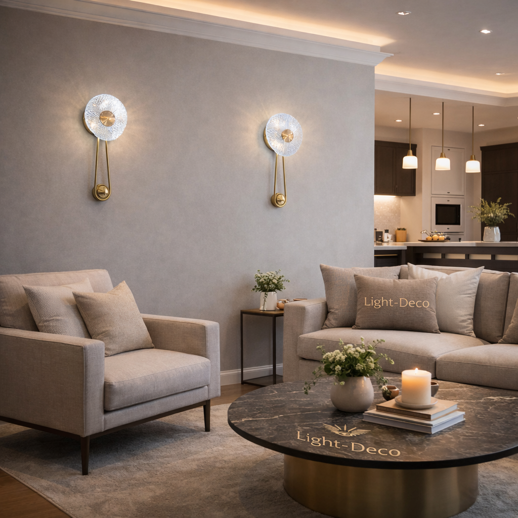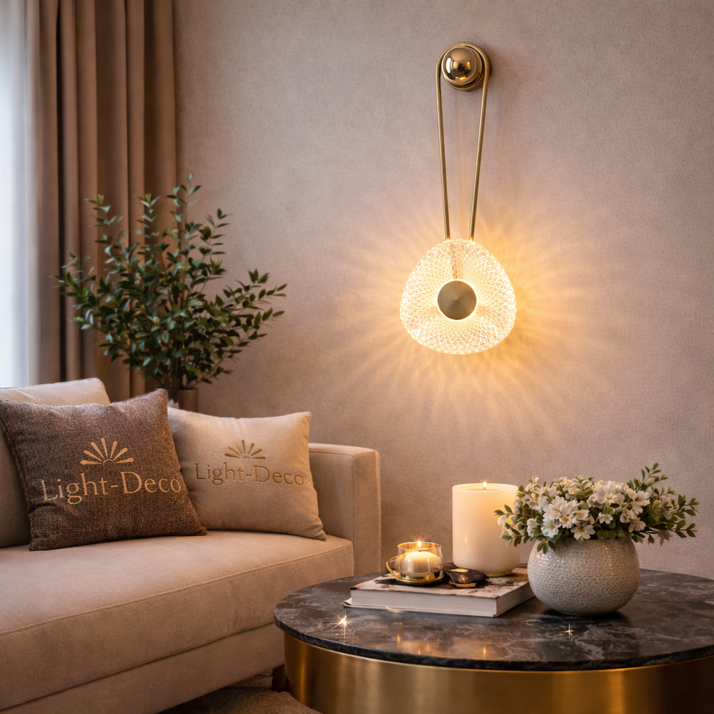 Applique murale moderne en verre texturé et métal doré au design élégant. Son diffuseur en verre crée une lumière douce et chaleureuse qui se projette délicatement sur le mur. Idéale pour salon, chambre ou hôtel, elle apporte une touche raffinée et décorative tout en offrant un éclairage d’ambiance élégant.