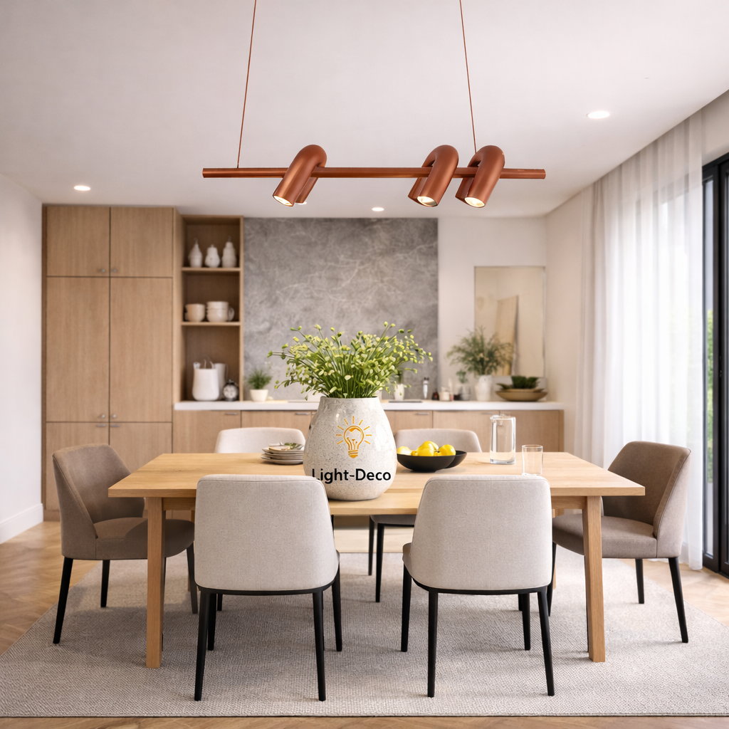 Lustre ou plafonnier au design tubulaire moderne en Acrylonitrile butadiène styrène, alliant lignes épurées et élégance contemporaine. Parfait pour les maisons en bord de mer (anti corrosion ), il diffuse une lumière douce tout en apportant une touche unique et sophistiquée à votre intérieur, entre nature et modernité.