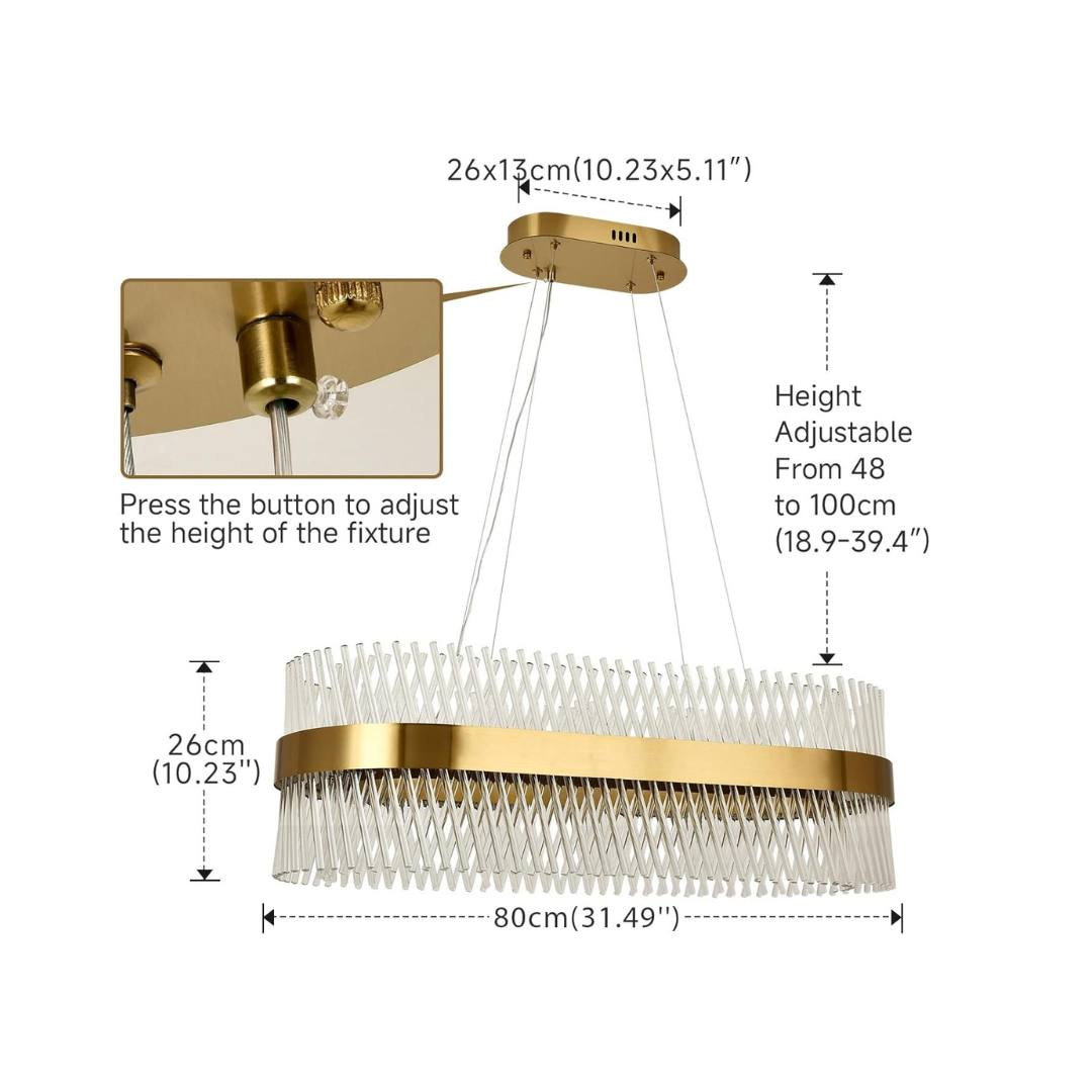 Ce lustre ovale de 80 cm marie subtilement le style traditionnel et la modernité. Conçu pour sublimer les espaces rectangulaires, il diffuse une lumière éclatante tout en apportant une touche d’élégance et de raffinement. Idéal pour le salon ou le séjour, il crée une atmosphère chaleureuse et sophistiquée.