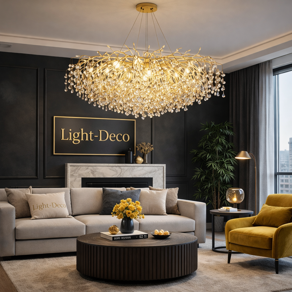 Le lustre en verre et cristallin 50% Beldi-50% moderne allie élégance contemporaine et luxe, idéal pour sublimer les salons marocains. Sa finition raffinée crée une ambiance éclatante et glamour, en faisant une pièce maîtresse parfaite pour toute décoration intérieure.