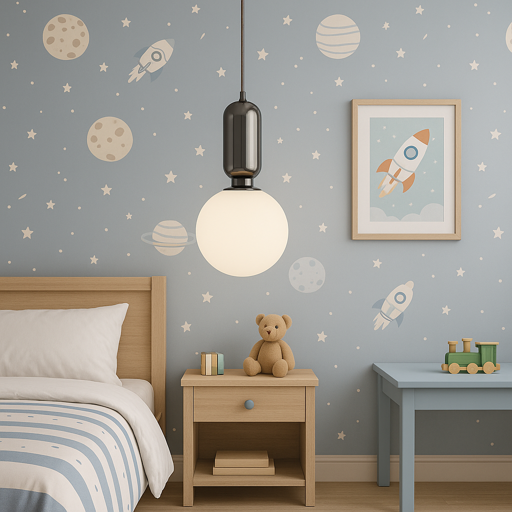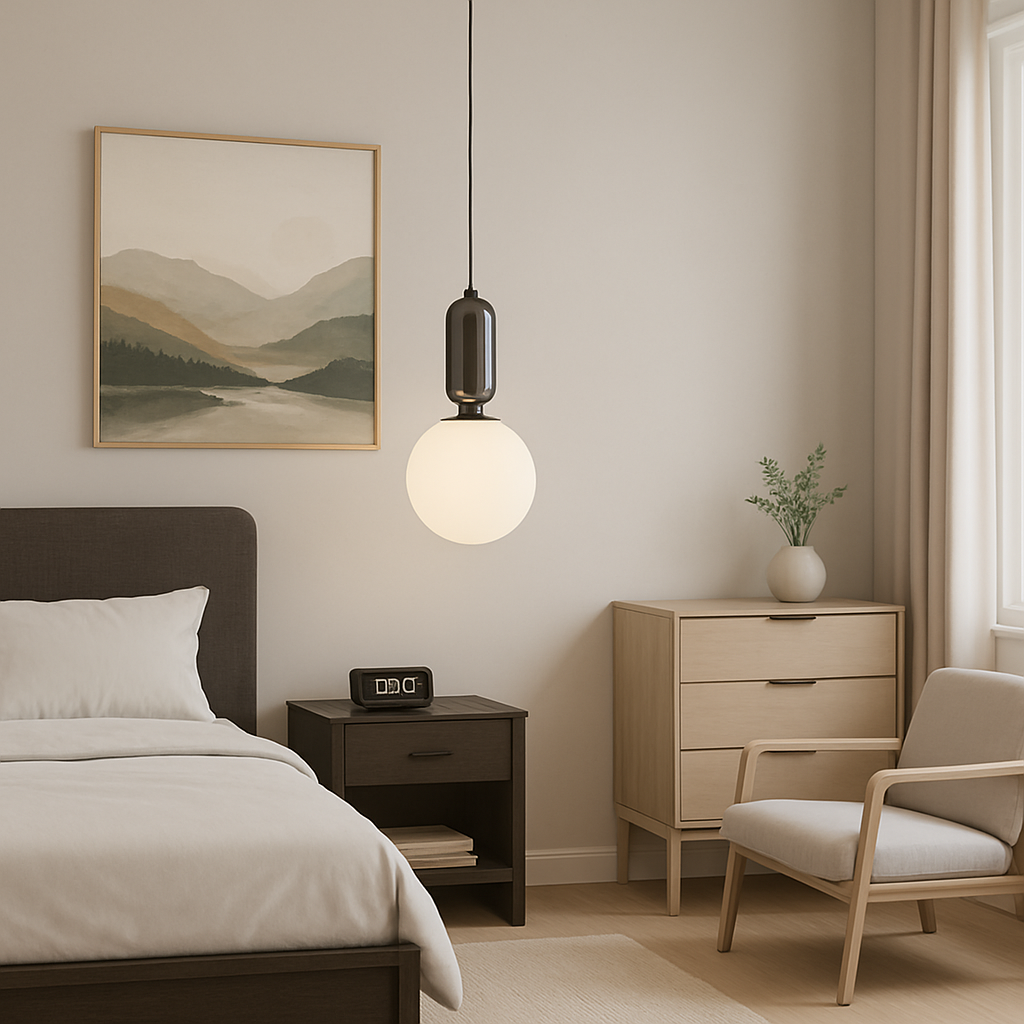 Suspension Dark Silver élégante et moderne, idéale pour une tête de lit. Son fini métallisé apporte une touche sophistiquée tandis que sa lumière douce crée une ambiance chaleureuse et apaisante, parfaite pour sublimer une chambre contemporaine.