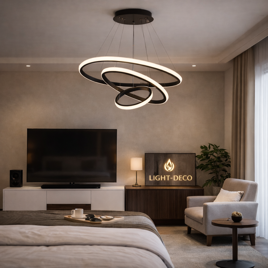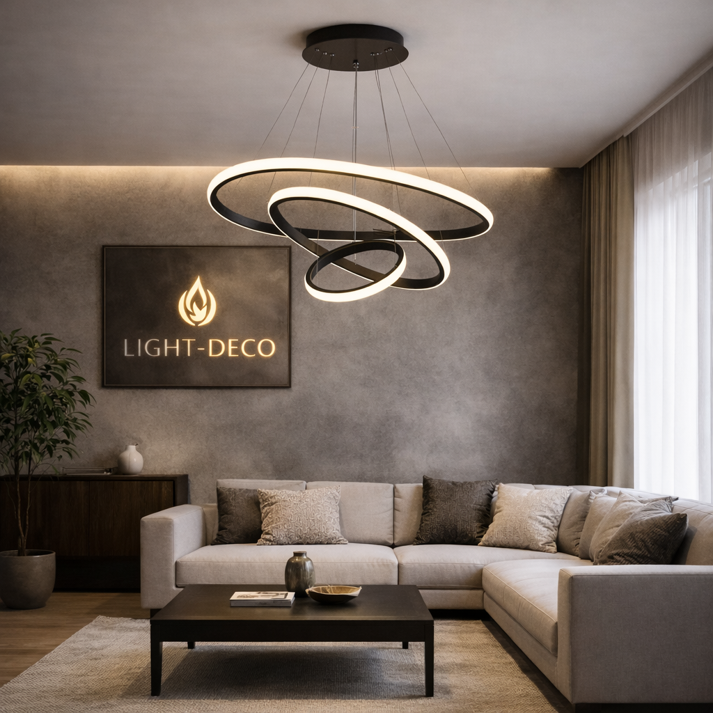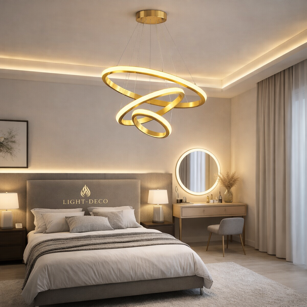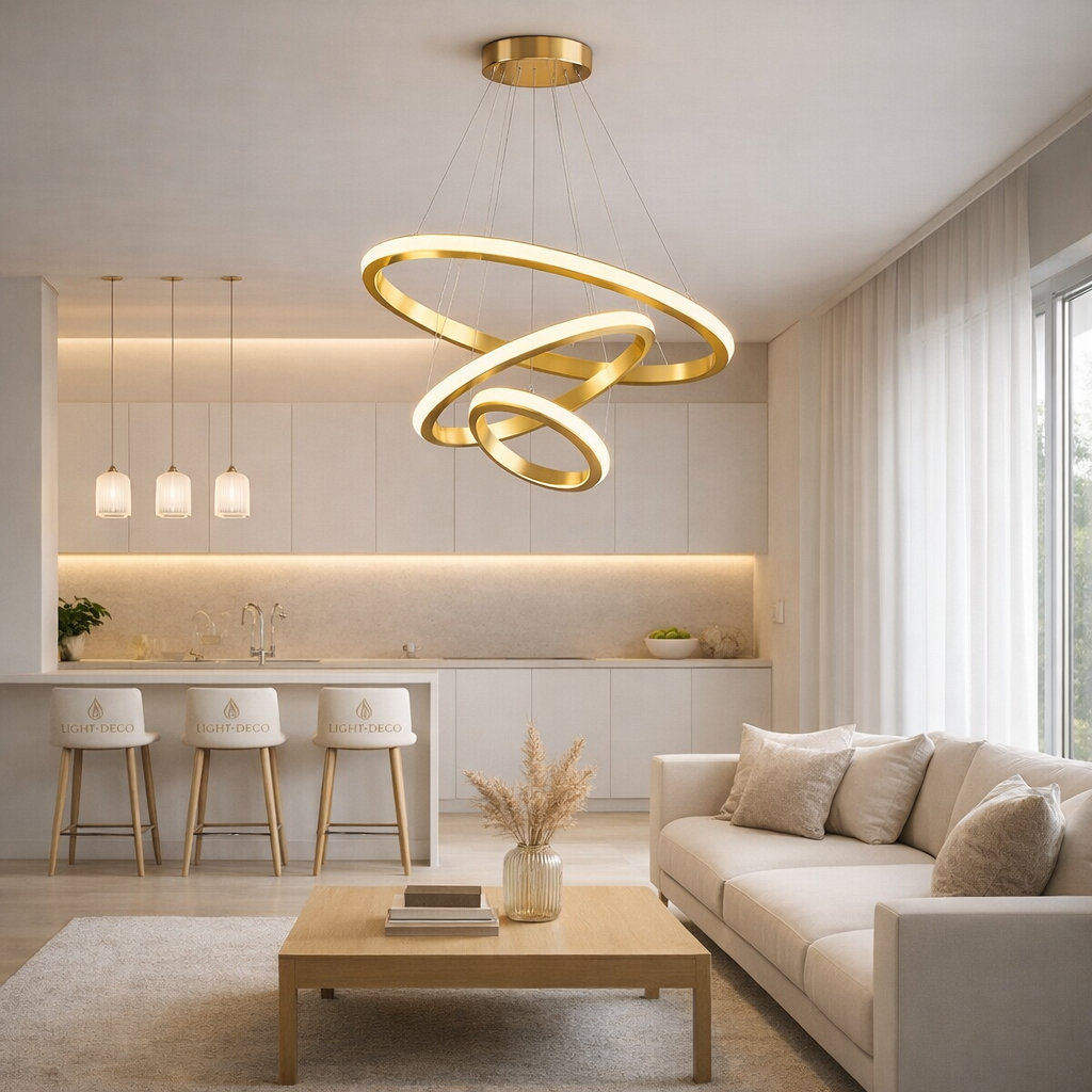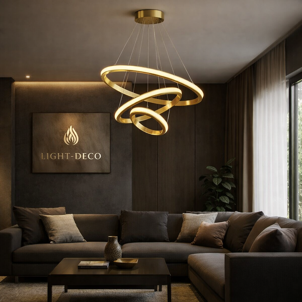 Ses anneaux lumineux offrent un éclairage doux et raffiné, idéal pour sublimer un salon ou une salle à manger. Un design luxueux qui associe brillance dorée et sophistication contemporaine.
