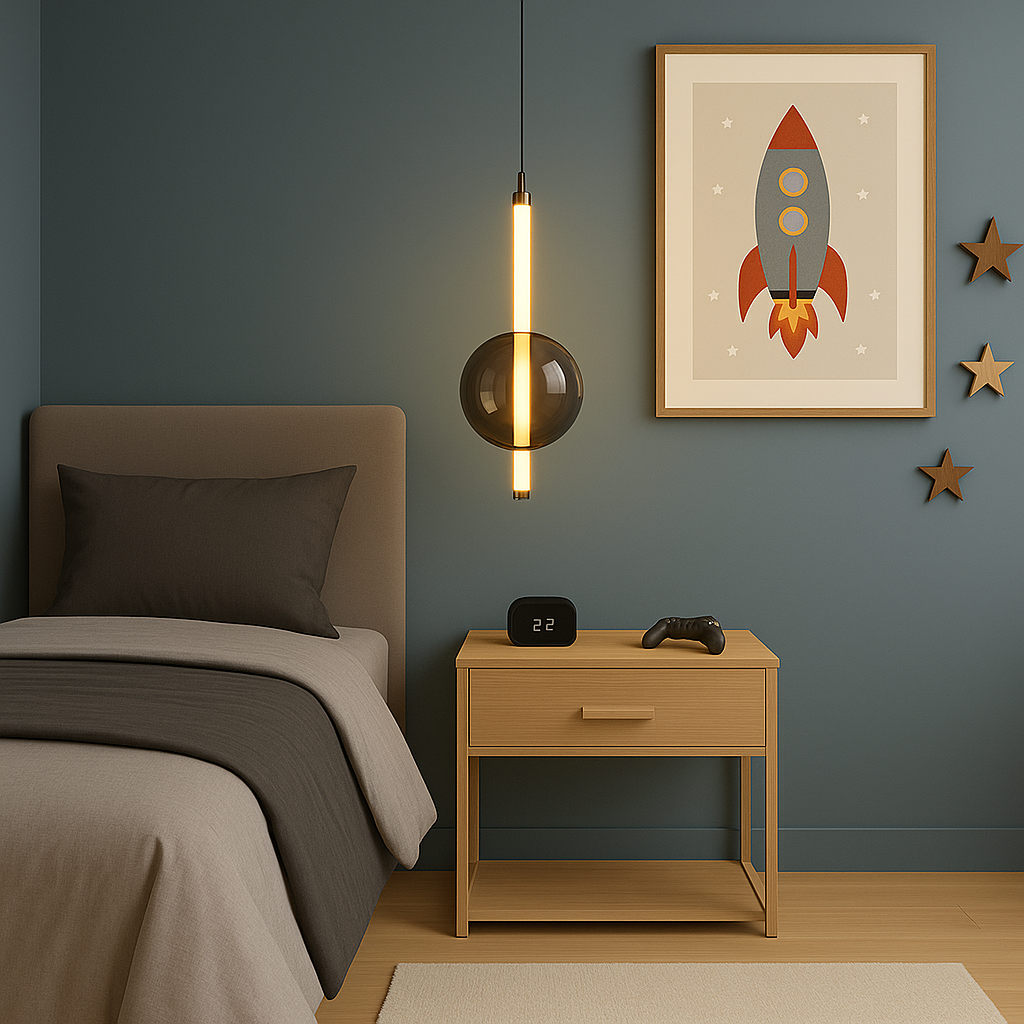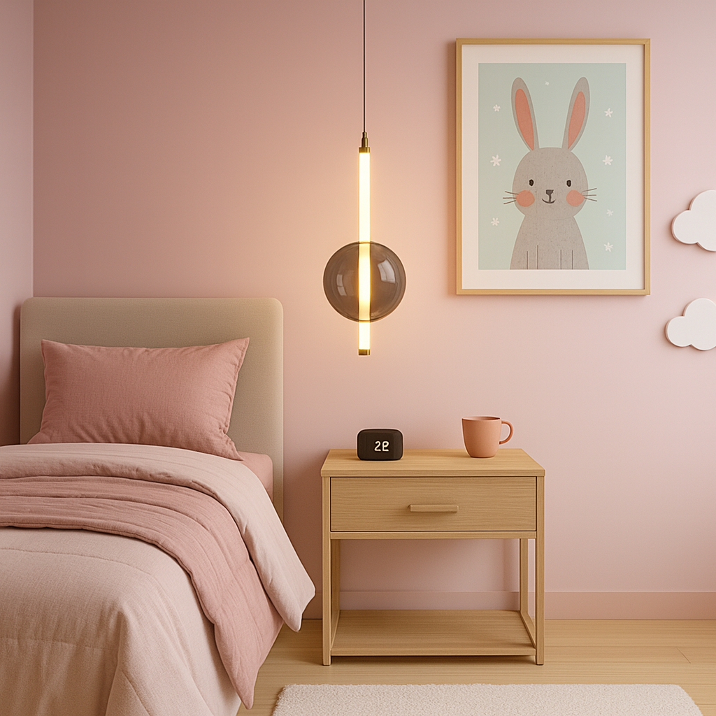Une suspension élégante et épurée, composée d’un globe translucide associé à une tige lumineuse verticale. Son design contemporain diffuse une lumière douce et homogène, idéale pour créer une ambiance raffinée et chaleureuse dans tout espace intérieur.