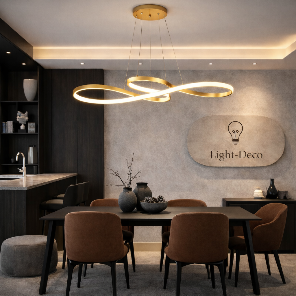 Les courbes gracieuses du signe infini ajoutent une fluidité artistique à la suspension, créant un équilibre entre la symbolique du design et l'esthétique décorative.